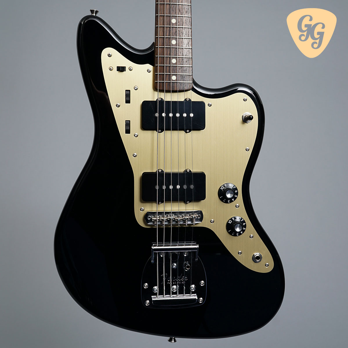 A sweet Fender Inoran Jazzmaster from Fender Japan in black with gold anodised pick guard! In…