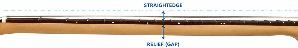 - Relief: Measure and adjust the guitar’s truss rod to increase or decrease the bow (known as relief) in the neck
