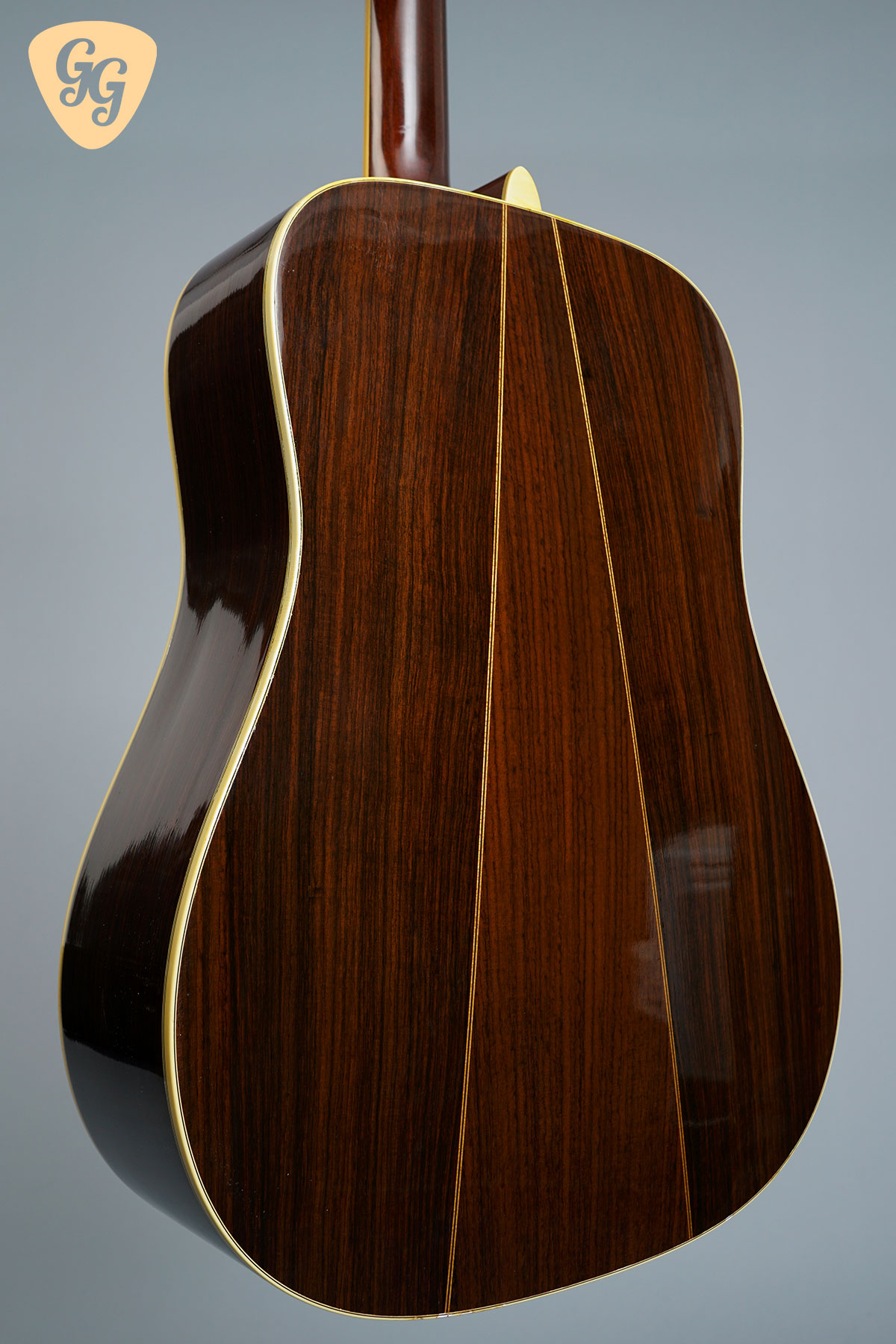 A fantastic sounding Martin D-35P from 1990. This is the performance model with the slightly slimmer neck. It plays fantastically and also has a very unique charm, having aged very well. Cosmetically this guitar is in good condition with natural signs of wear and use for its age. There’s a slight crack from bridge, this is just in the finish and is not structural at all. It benefits from re-fret. There is some lacquer checking throughout and a some slight cracks in the binding which have been glued. This is all nothing that affects the playability. We have given this guitar a full check over and all works perfectly.