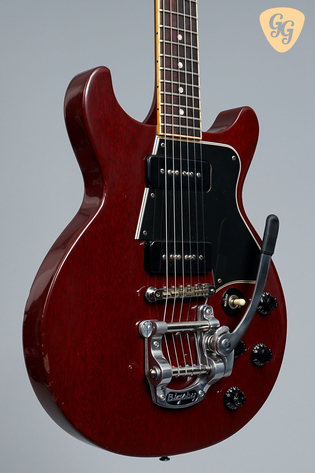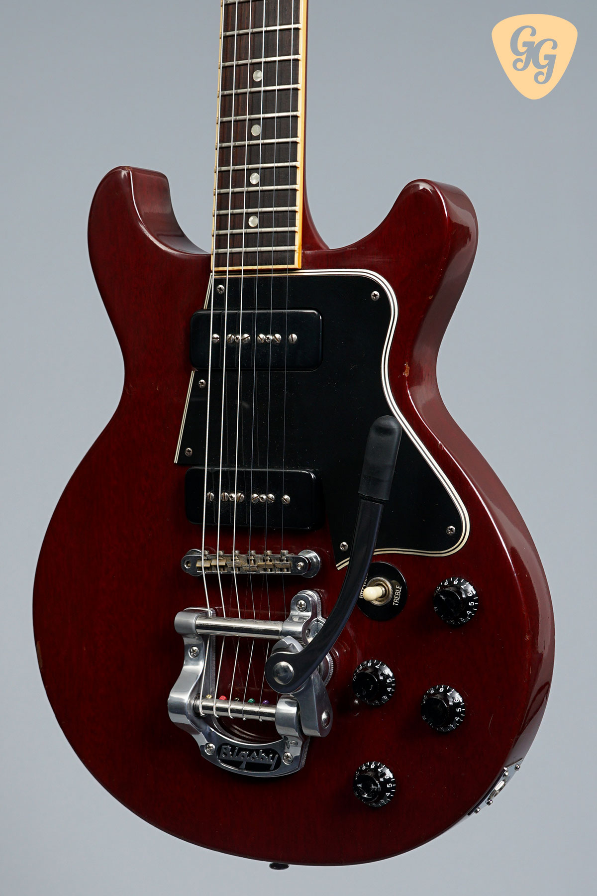A fantastic 1997 Gibson Les Paul Special in the classic Wine Red finish with Bigsby fitted. This guitar is in good condition for its age, with some signs of wear. There is scratches all over the finish, wear on back and side of neck, tarnishing on the hardware and the finish is cloudy. We have given this guitar a full check over, the trussrod and electronics all work perfectly. Included is a Gator Cases gigbag.