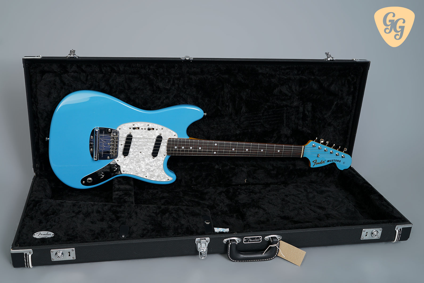 A superb Fender Traditional ’70s Mustang from Fender Japan in California Blue! In great condition with some small signs of use, some small marks to finish throughout, small ding on side of fretboard at 1st fret, chip on back of top horn. We have given this guitar a full check over, the trussrod and electronics all work perfectly. Included is a hardcase.