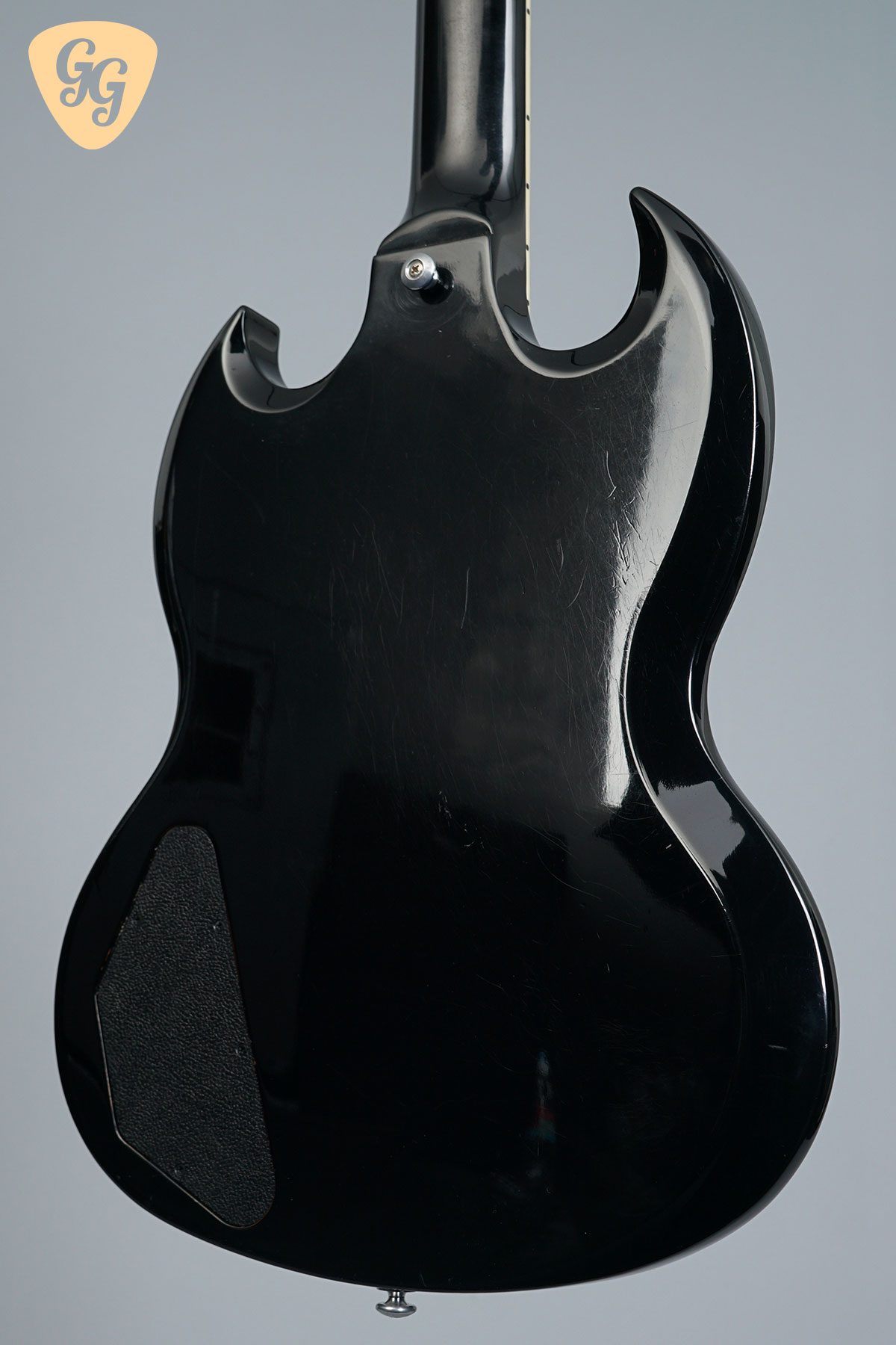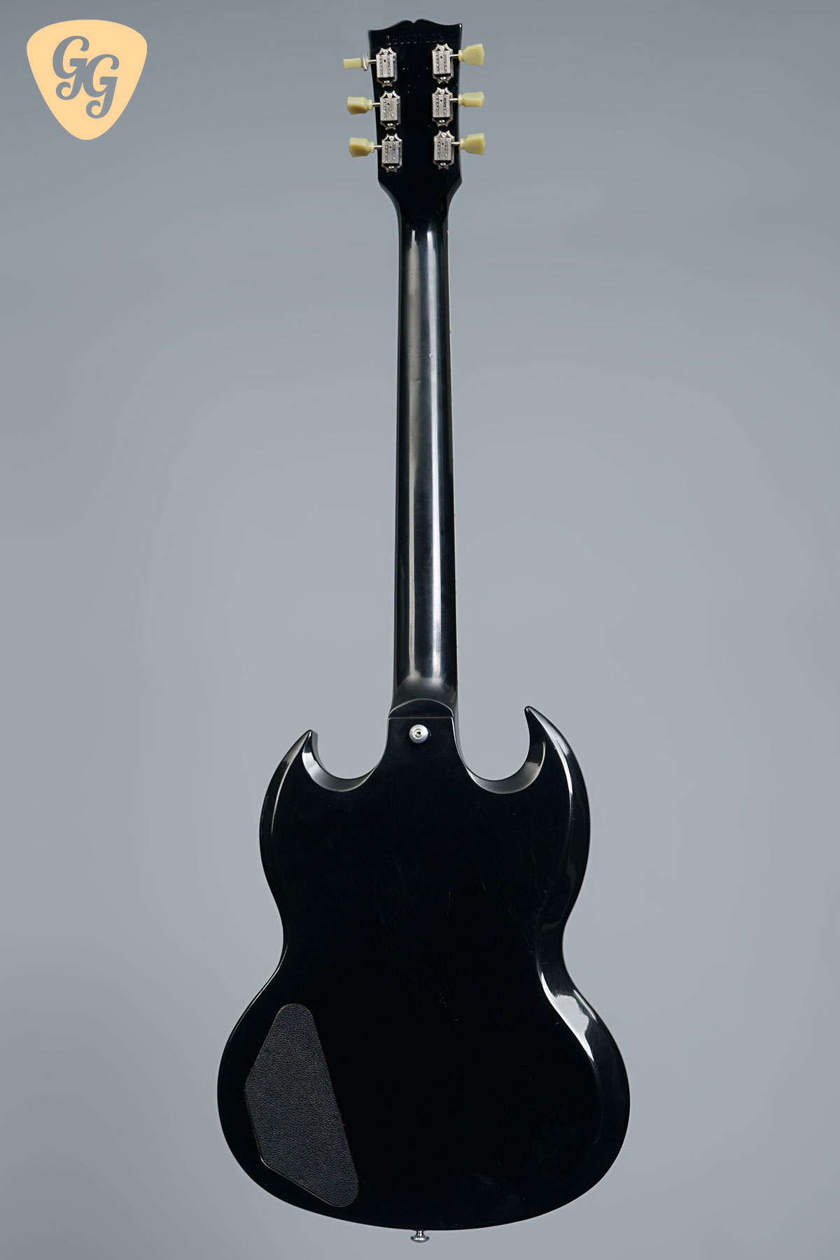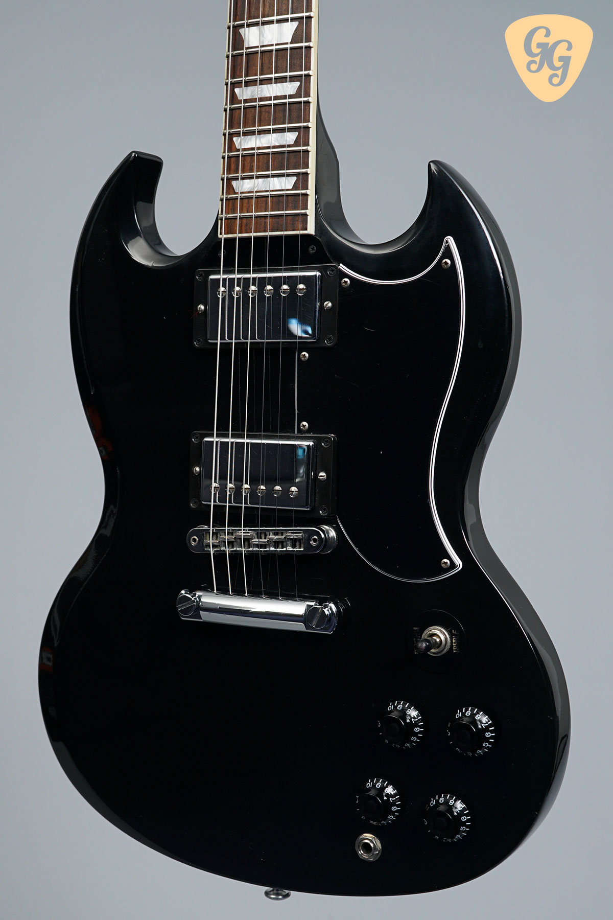 Here we have a fantastic Gibson SG Standard in Ebony, this one really has that classic SG look! The guitar is in good condition, with lots of signs of use throughout body, including small dings back of neck at second fret. The finish is going matte and clouding up all over. We have given this guitar a full check over, the trussrod and electronics all work perfectly. Included is a hardcase.