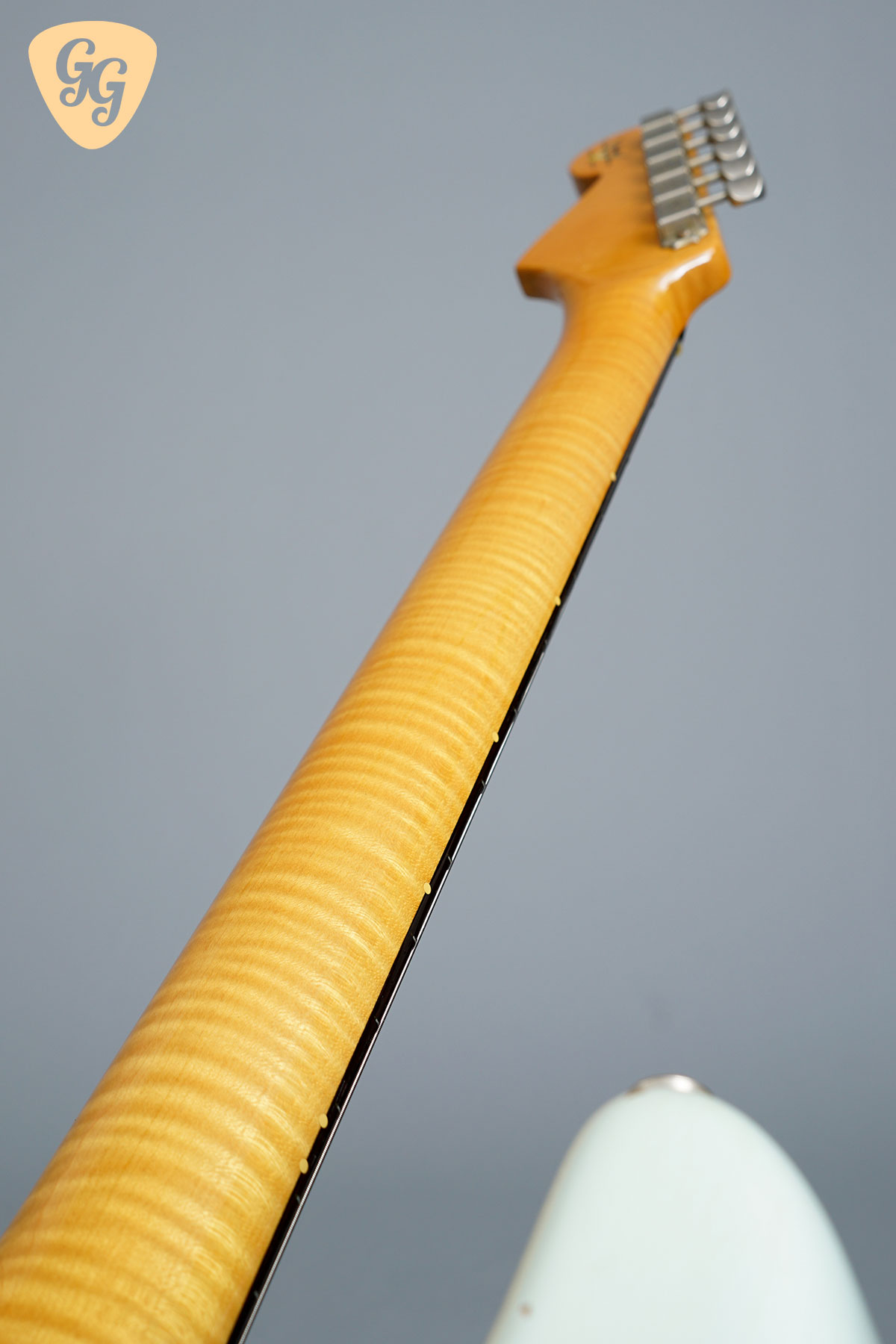 What a look on this fantastic 2016 Custom Shop ’59 Stratocaster Relic in super faded sonic blue! This guitar features an absolutely stunning flame maple neck, and a gorgeous dark slab rosewood board. The Journeyman relic finish on the body look fantastic, and the gloss finish on the back of the neck makes it a stand out guitar. The pickups are a set of Fender Custom Shop Ancho Poblano pickups, which provide a vintage tonal character with a modern output, meaning each pickup gets progressively hotter from neck to bridge, and truly sounds unbelievable. We have given this guitar a full check over, the trussrod and electronics all work perfectly. This guitar is in mint condition. Included is the original Custom Shop hard case and certificate.