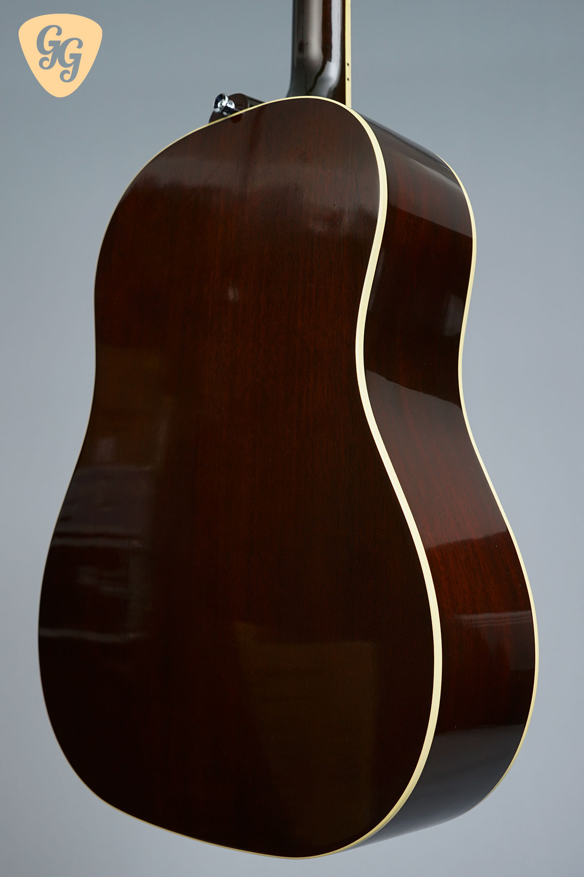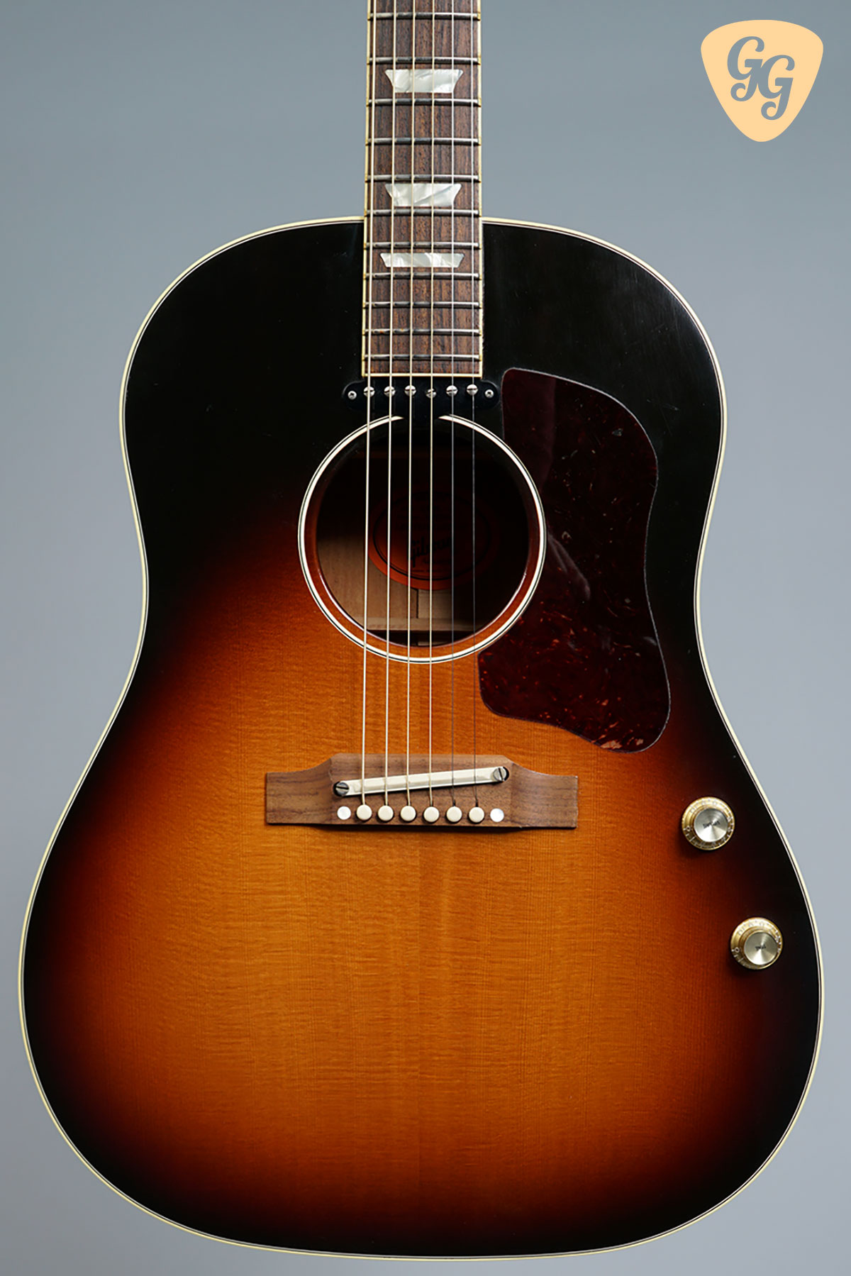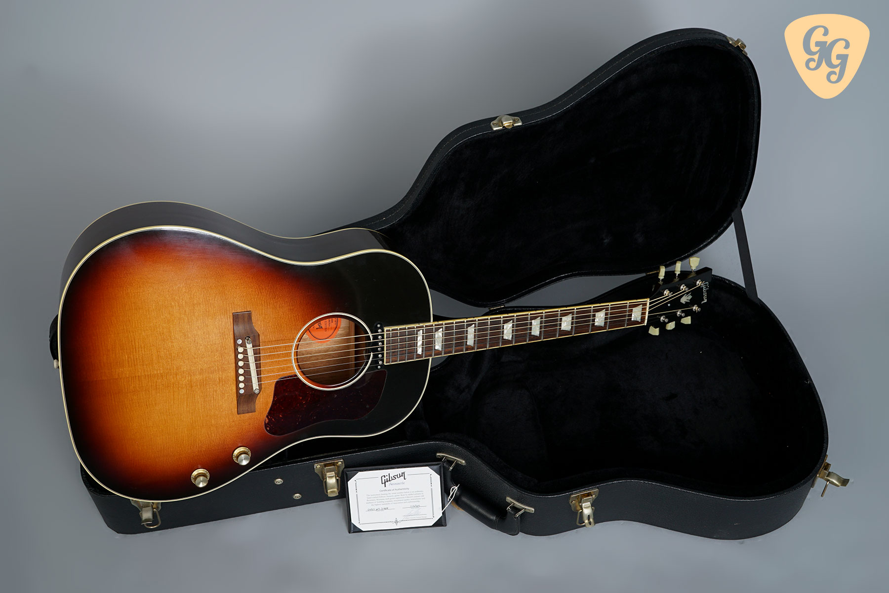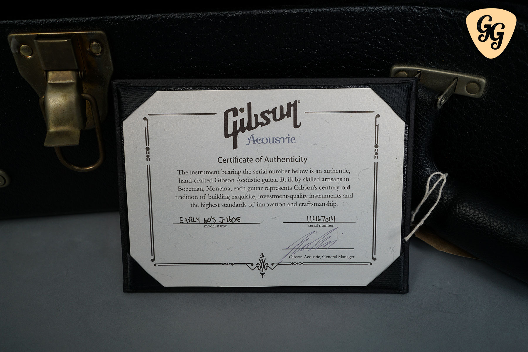 Here we have a great Gibson Custom Shop Early 60’s J-160E in vintage sunburst! Made famous by the Beatles as the go to acoustic for John Lennon and George Harrison for the best part of the 60’s. Factory fitted with a passive single-coil P-90 pickup and top-mounted volume and tone knobs. This is a great playing and sounding guitar and is truly a great example. It is in very good overall condition with a few small areas of wear on the body around the sound hole. Small scratches to front of headstock. Small area of wear on back of neck finish, where it has been leant up against something, no dings, just a small nitro paint burn mark. Included is the original hardcase and certificate.
