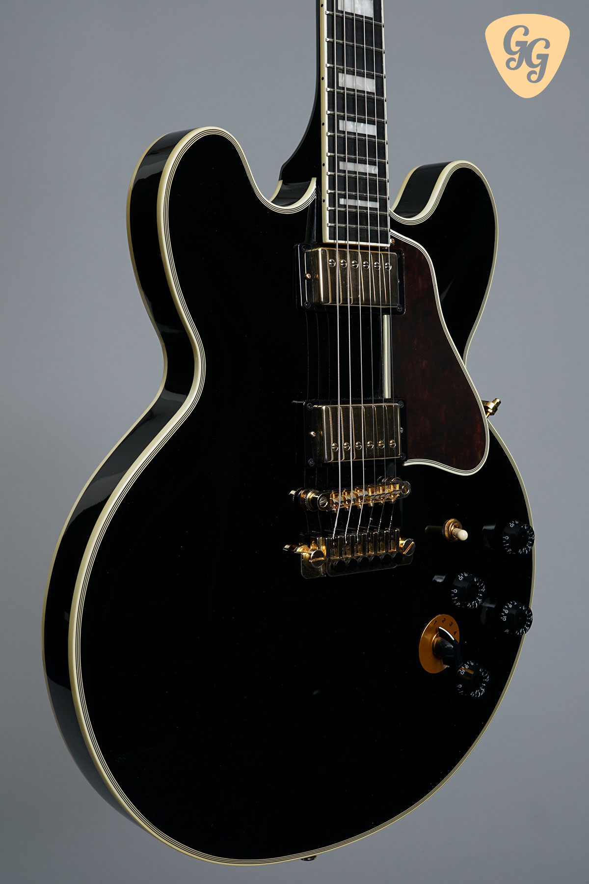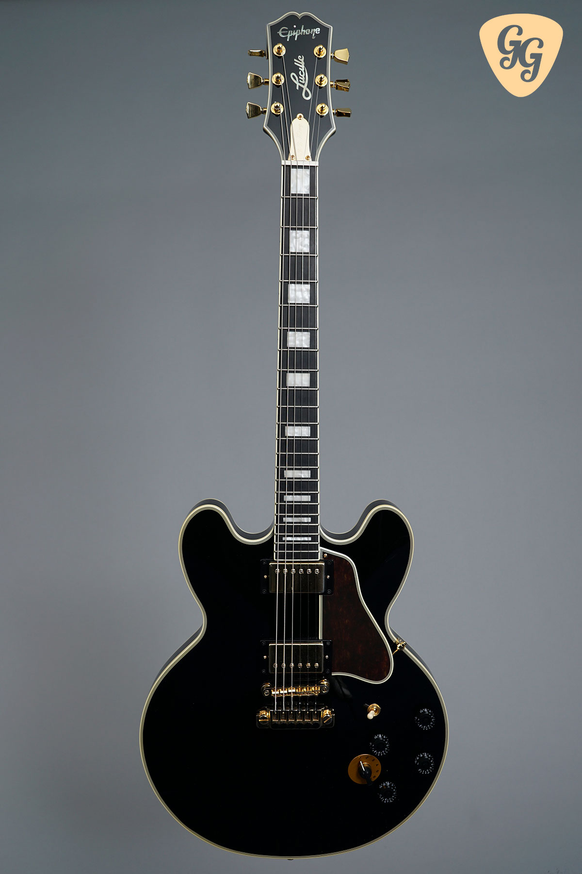 The Epiphone “Lucille” is based on the famously-named Gibson ES guitars that blues legend B.B. King used over several decades. It’s classy gloss Ebony finish, gold hardware, pearloid block inlays and bound tortoise pickguard make it instantly recognisable, and there are plenty of unique custom features that set it apart from a stock Epiphone ES-335 semi-hollow model. In excellent overall condition for its age with some small marks throughout. We have given this guitar a full check over, the trussrod and electronics all work perfectly. Included is a fitted hardcase.