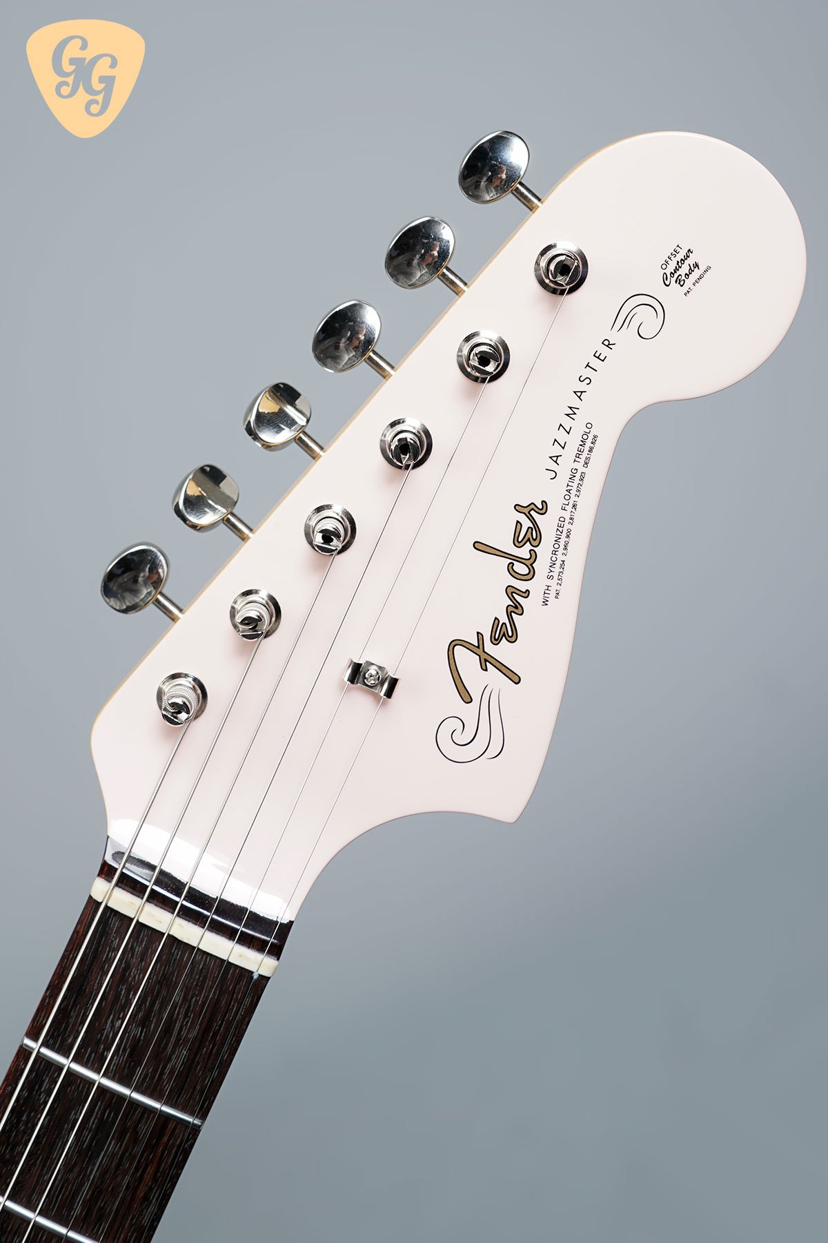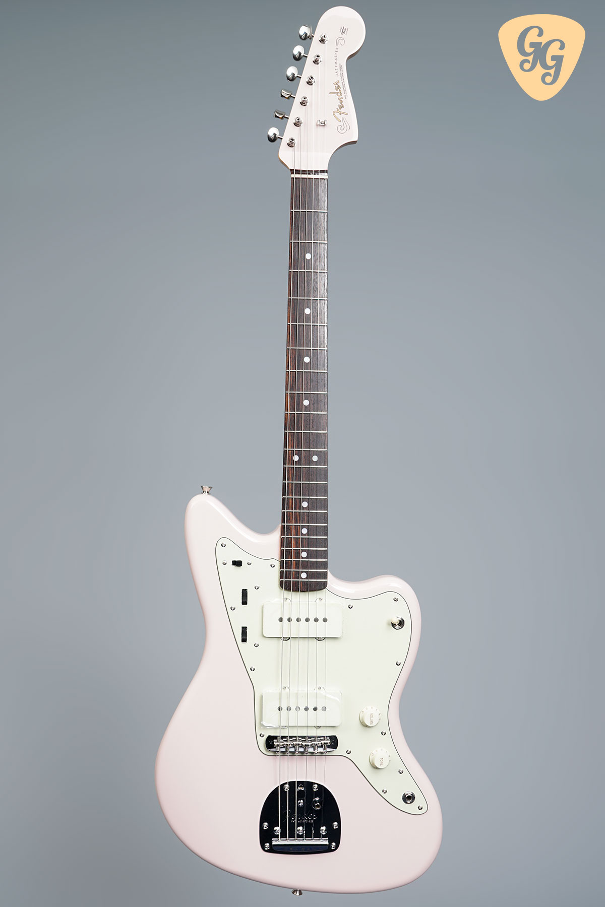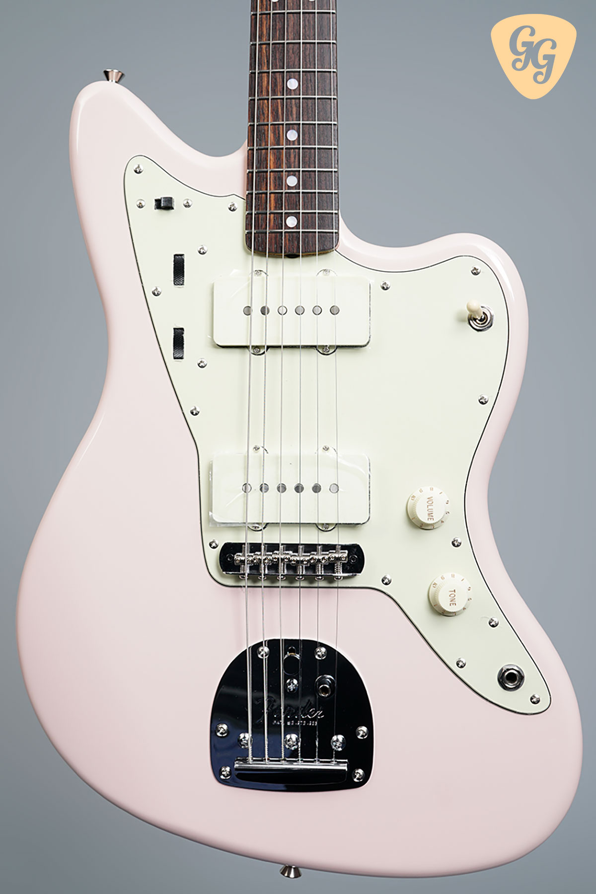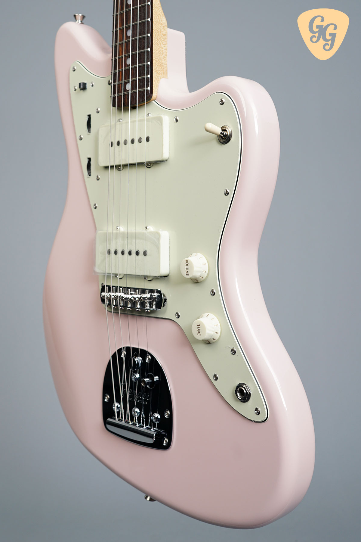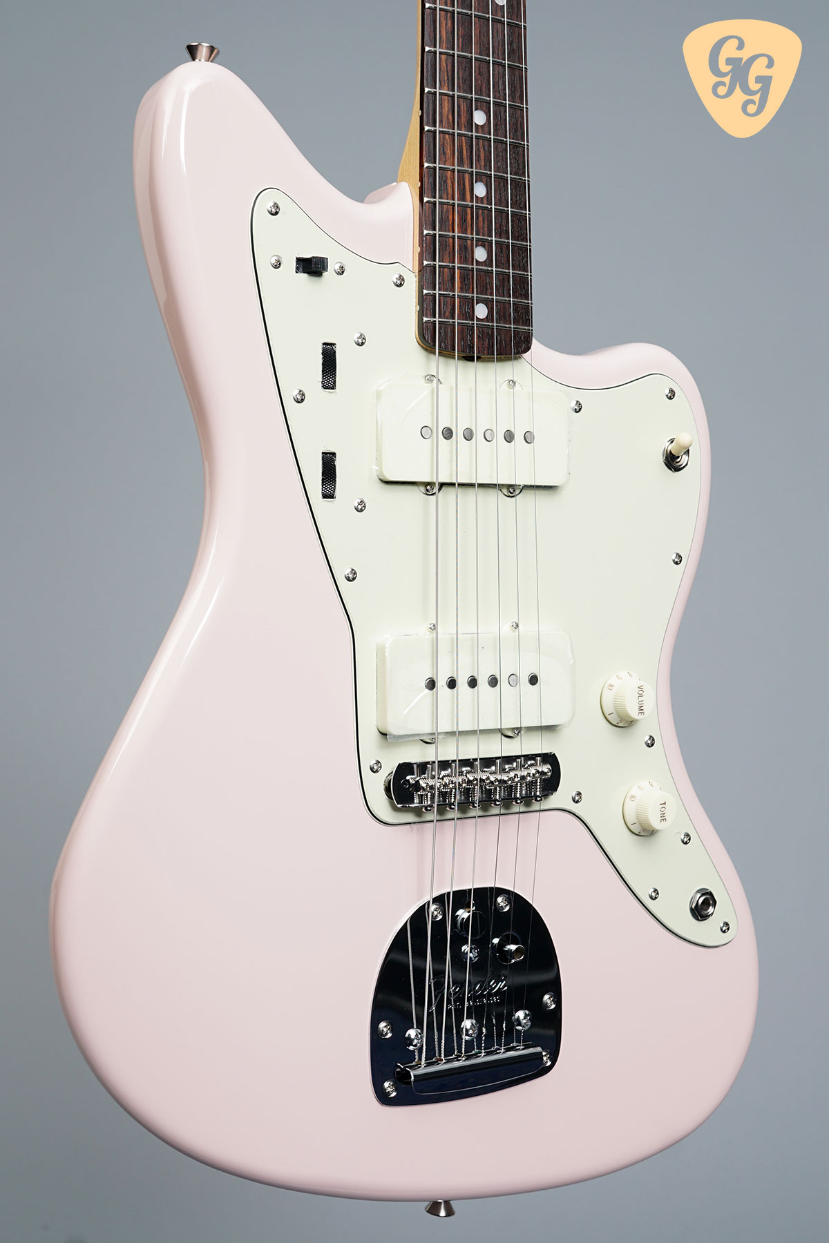 Here is a sweet Fender Japan FSR Traditional II Jazzmaster, finished in Shell Pink with a matching headstock. This guitar is a Fender Japan Limited Edition, which were made in small numbers and are hard to find outside of Japan. In mint condition with no signs of use at all. We have given this guitar a full check over, the trussrod and electronics all work perfectly. Included is the original gig bag, tremolo arm and paperwork.