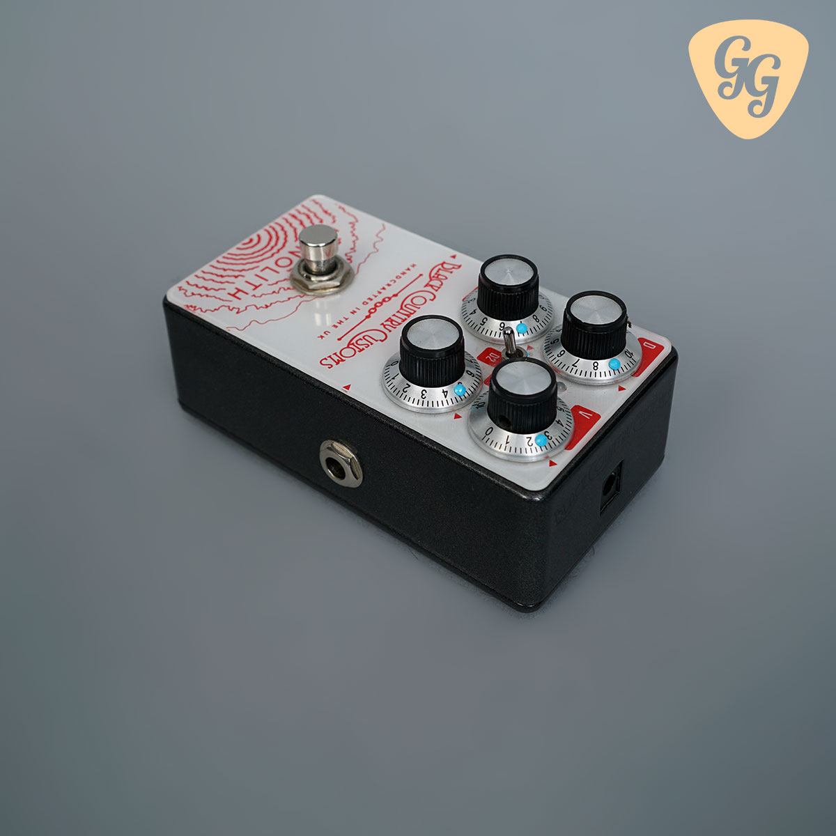 Designed to give the player a total command and control over a spectrum of different gains and harmonic distortions from Classic fat rock tones to jangly indie lines, and everything in between. The MONOLITH delivers expressive gain even at low levels. With a very pleasing dynamic response to pick attack the harder you dig, the more expressive it gets. Even at high gain level, when you hit it hard you can still hear every note of big chords as well as the nuances of intricate lead lines